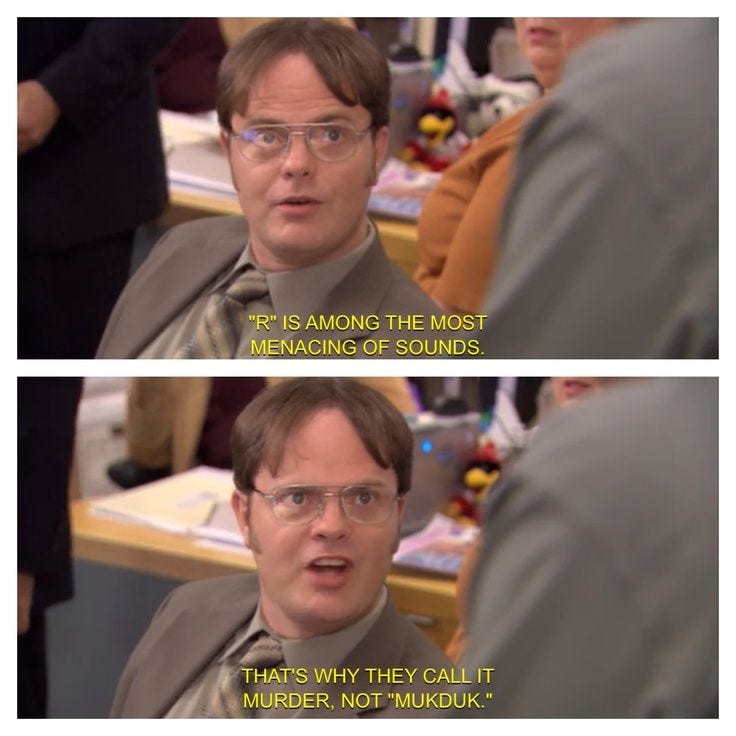 In her chapter “Sound,” Oliver explores the division of alphabetical sounds into vowels (a,e,i,o,u, and sometimes y and w), consonant semivowels (f,h,j,l,m,n,r,s,v,w,x,y,z, and soft c and g), and consonant mutes (b,d,k,p,q,t, and hard c and g). She then illustrates how the different sound families have different felt qualities; namely, semivowels are smoother, softer, gentler, and more fluid, whereas mutes are striking and more abrupt, which can heighten attention or cause amusement. Oliver focuses primarily on how the use of semivowels vs. mutes can be used to play with the attention of the reader, but I want to focus on how inherently funny mutes are for just a moment! For example, if you google the “funniest words in the English language” you find a list with quite a disproportionate number of b’s, d’s, k’s, p’s, t’s, and hard c’s and g’s… everything from the crass humor of words like “booty” or “egghead” to the slightly more classy but equally absurd “discombobulated”, “nincompoop”, or “flibbertigibbet”.